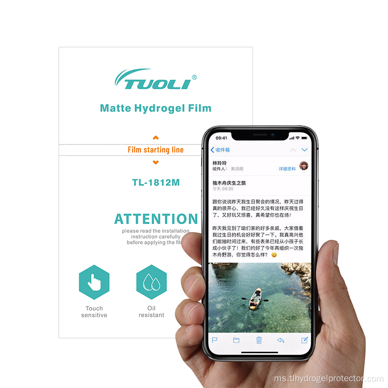 Di samping itu, filem pelindung matte mempunyai salutan air-penerima air oleophobic yang menghilangkan minyak dan kotoran, sangat mengurangkan pembentukan cap jari berminyak pada paparan. Pastikan pandangan yang jelas apabila terdedah kepada cahaya matahari.